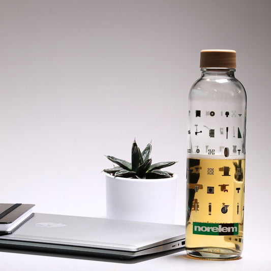Die 0,7l norelem Glasflasche wurde aus hochwertigem, recyceltem Glas hergestellt und ist daher nicht nur zeitlos elegant, sondern auch gut für die Umwelt. Bleib entspannt und trink mehr Wasser!